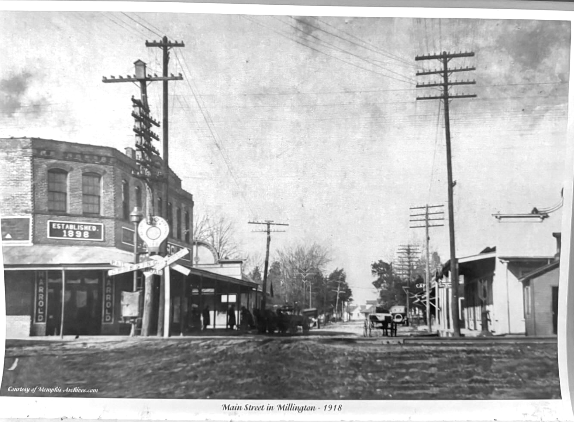 E.A. Harrold opened his first sundries store at the corner of C Street in 1898. The current brick structure was built in 1911, making it Millington's oldest surviving commercial building.